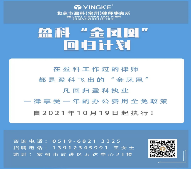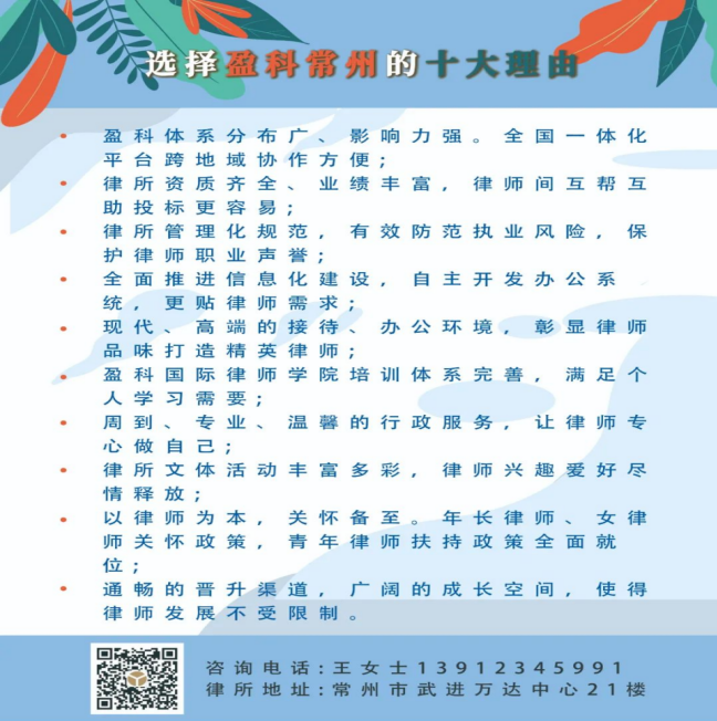 律所地址:武进万达中心21楼北京市盈科(常州)律师事务所