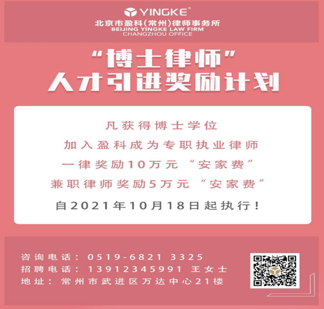 北京市盈科(常州)律所招聘——虚位以待 职等你